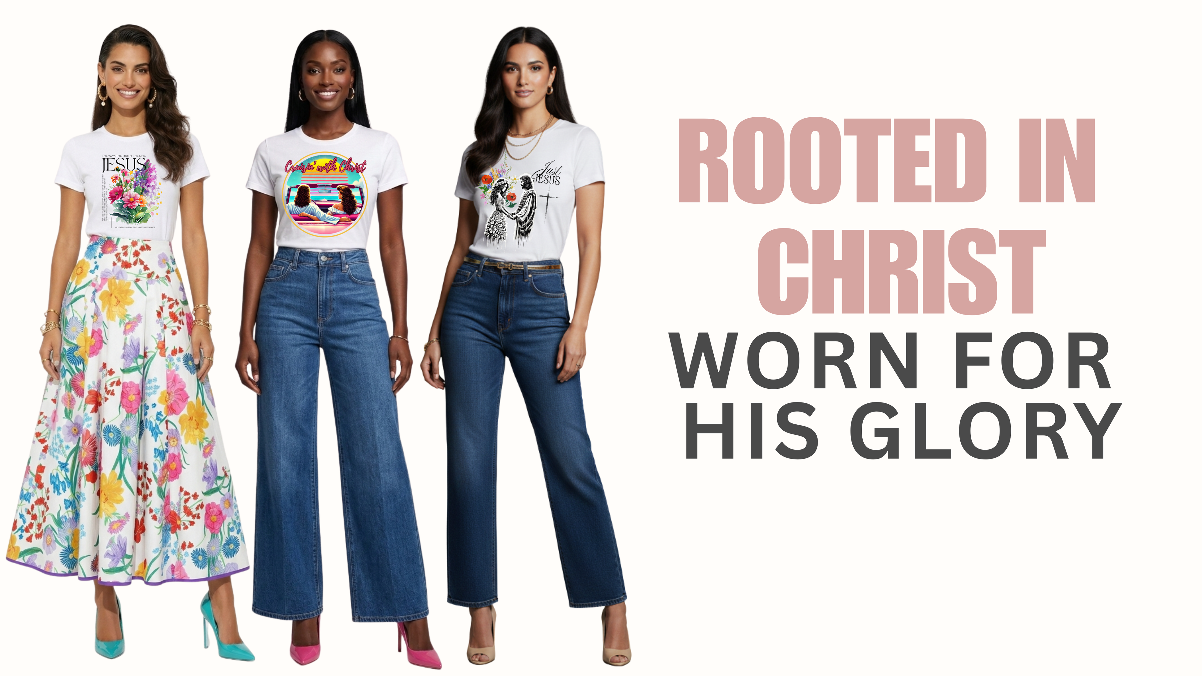 “The Floral & Gems tee is feminine, elegant, and filled with purpose. It’s rare to find Christian apparel that feels this modern and stylish!”