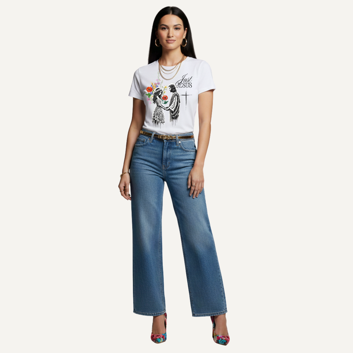 Wear your faith boldly with oursemi-fitted "Just Jesus" Christian T-Shirt. This cute christian shirt provides everyday comfort meets & eternal truth. Made for those who walk in faith, step into purpose, and have a desire to shine His light.